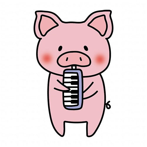 鍵盤ハーモニカを吹くぶた