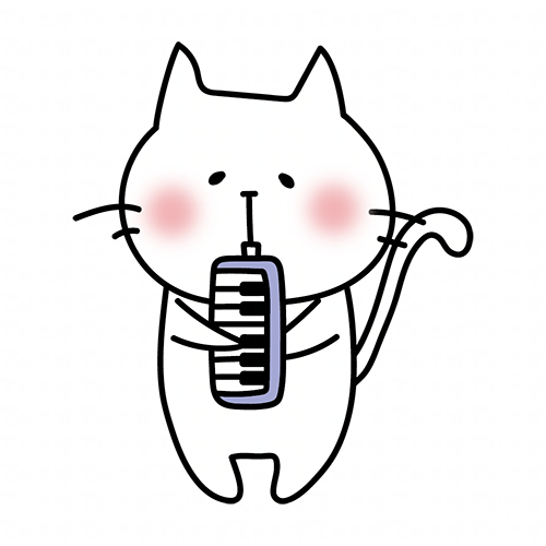 鍵盤ハーモニカを吹く白い猫