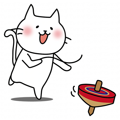コマ回しをして遊ぶ白い猫