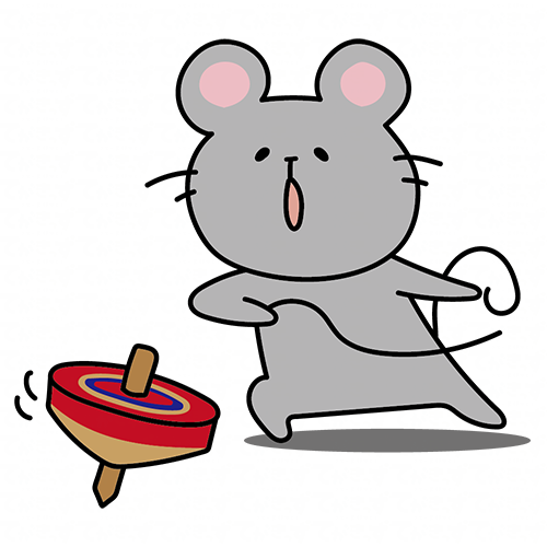 コマ回しをして遊ぶネズミ