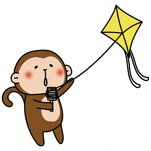 凧揚げをして遊ぶ猿