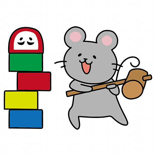 だるま落としをするネズミ