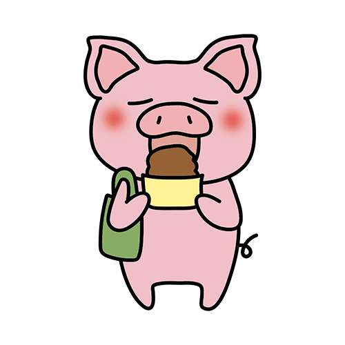 食べ歩きをするぶた
