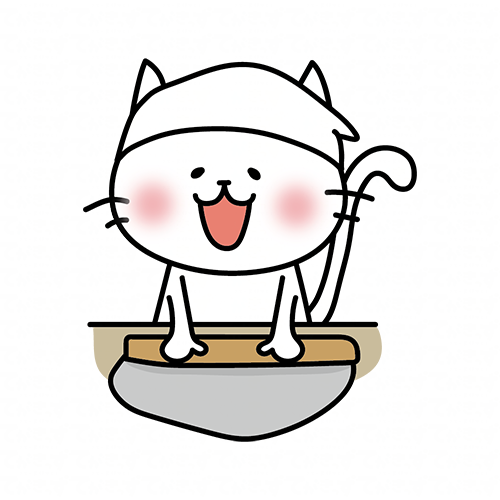 そば打ちをする白い猫