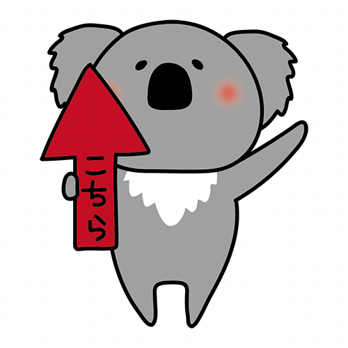 上を指す矢印を持つコアラ