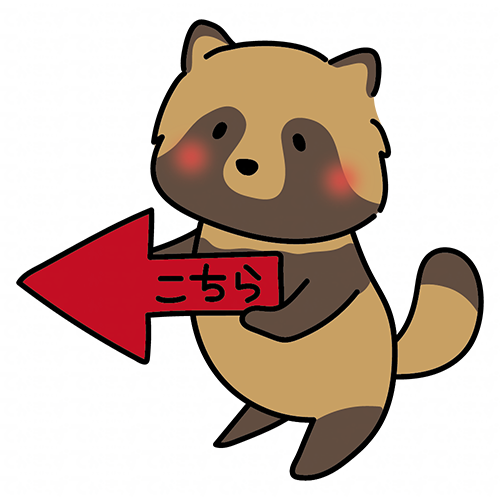 左を指す矢印を持つタヌキ