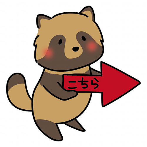 下を指す矢印を持つタヌキ