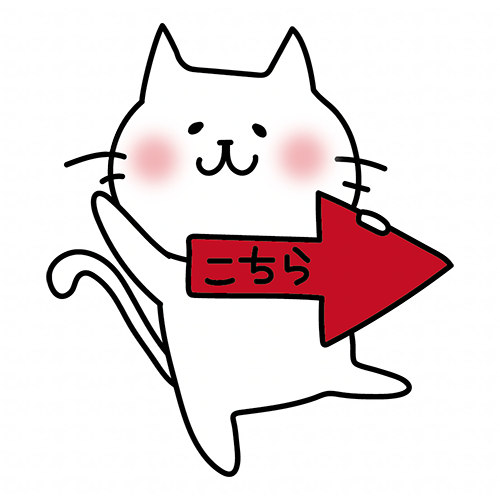 下を指す矢印を持つ白い猫