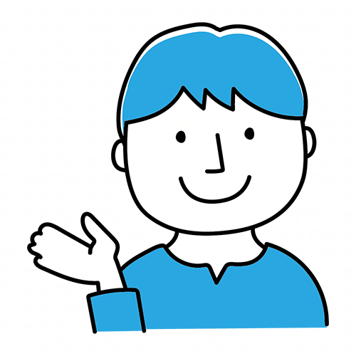 【シンプルな青い人】案内をする若い男性