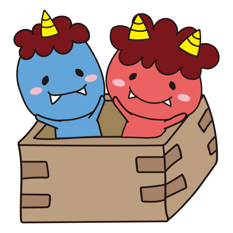 升から飛び出る赤鬼と青鬼(吹き出し)