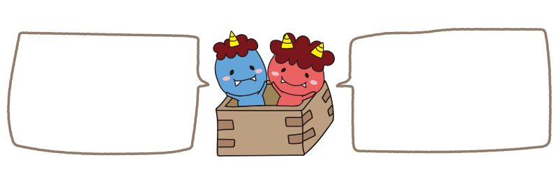升から飛び出る赤鬼と青鬼(吹き出し)
