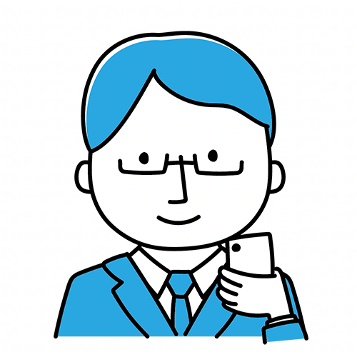 【シンプルな青い人】携帯電話を見ているスーツを着た眼鏡の男性
