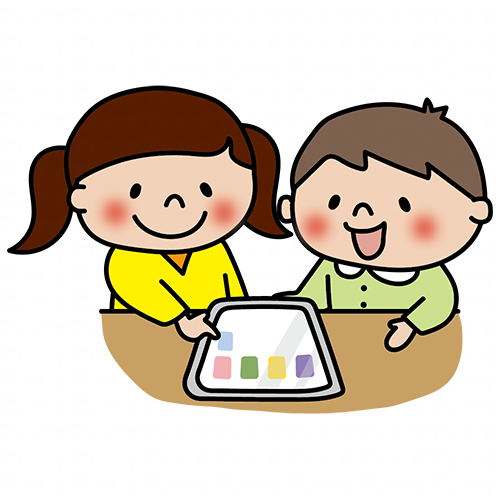 タブレットを操作する子供たち