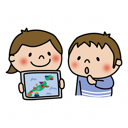 タブレットを男の子に見せる子供