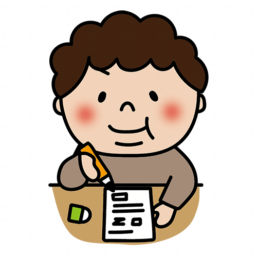 テストを受けるぽっちゃりした天パの子供(男の子)
