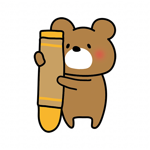 大きな橙色のクレヨンを持ったくまぽて