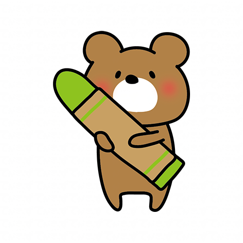 大きな橙色のクレヨンを持ったくまぽて