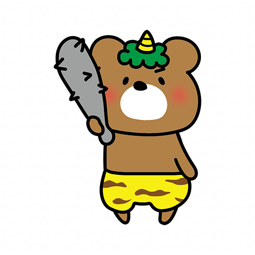 金棒を持っている青鬼の格好をしたくまぽて