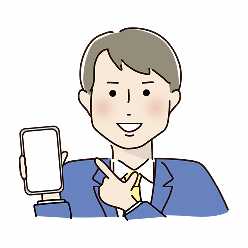 【ビジネス用】携帯電話を指さすスーツを着た男性