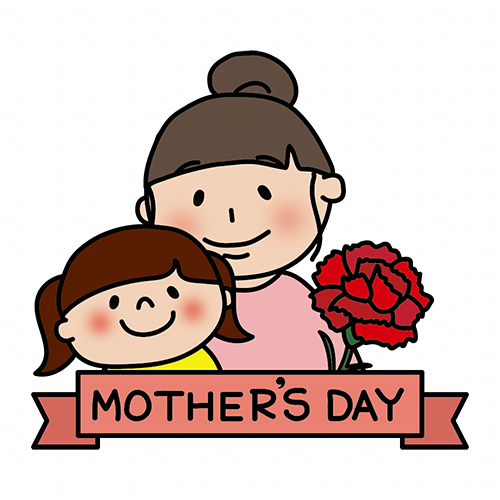 母の日のリボンと寄り添う娘と母親