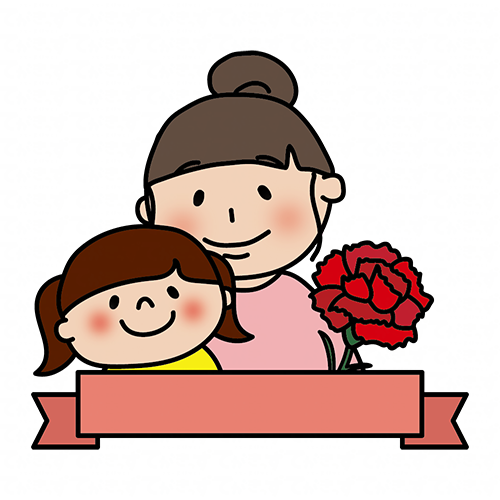 無地のリボンと寄り添う母と娘