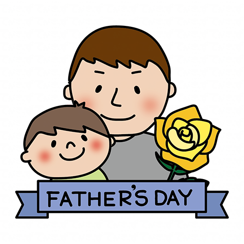 父の日のリボンと寄り添う息子と父親