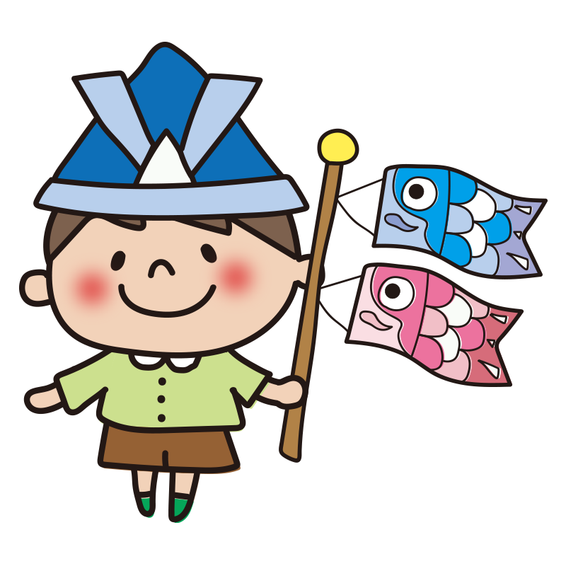 兜をかぶって鯉のぼりを持つ子供(男の子1)