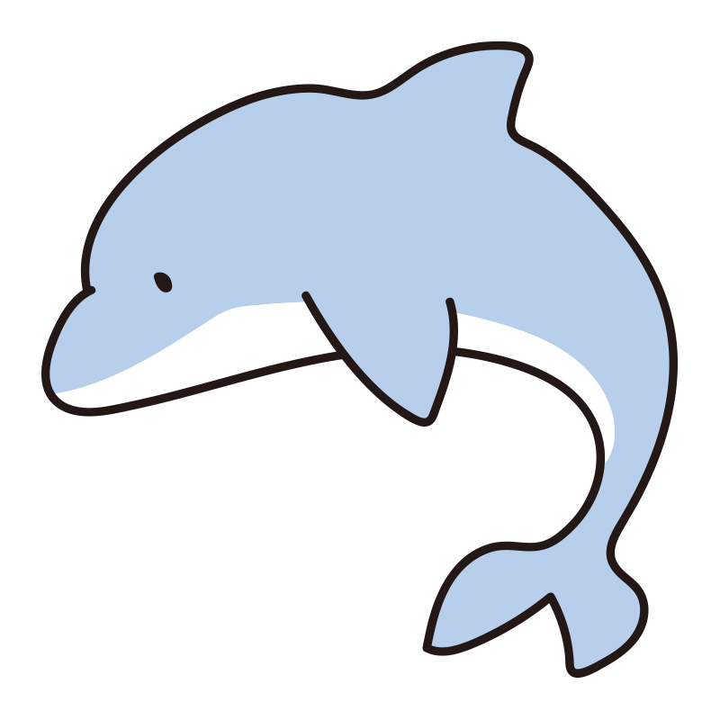 ジャンプしている青いイルカのイラストです。夏休みのお知らせやチラシにどうぞ!色も3色ご用意してます。