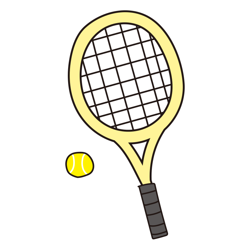 硬式テニスのラケットとボール(黄)