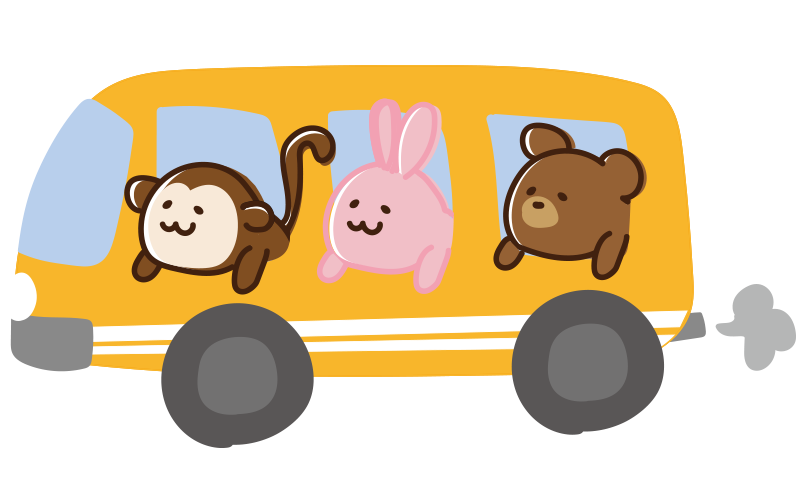 オレンジのバスに乗った動物