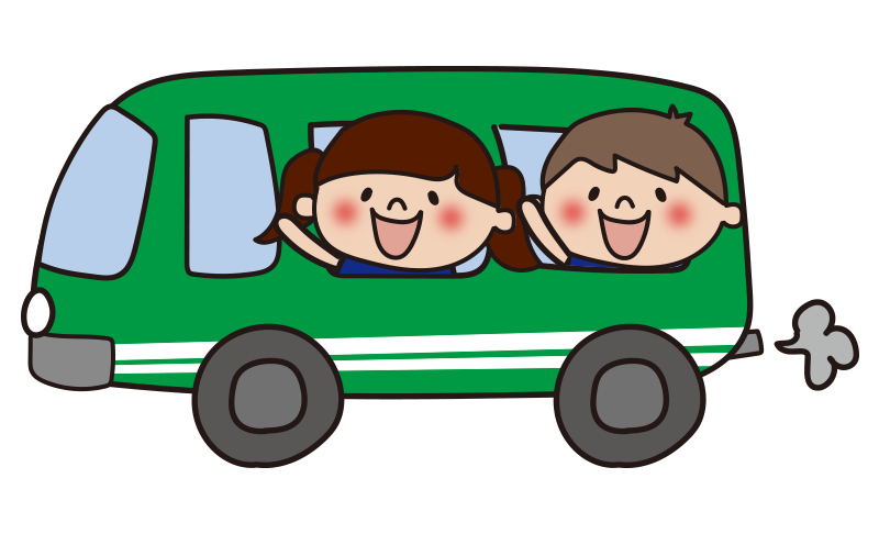 緑のバスに乗った子供