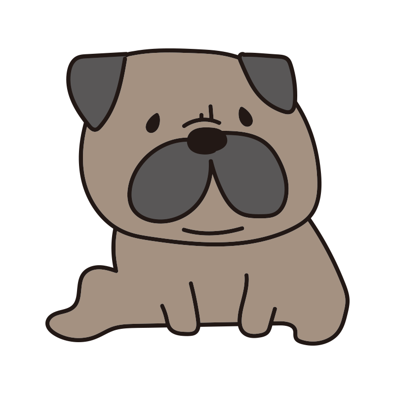 座っているパグ