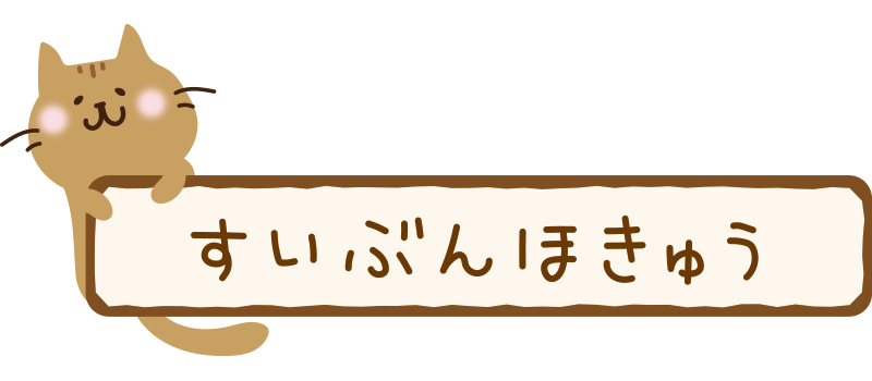 水分補給の看板を持つ茶色い猫