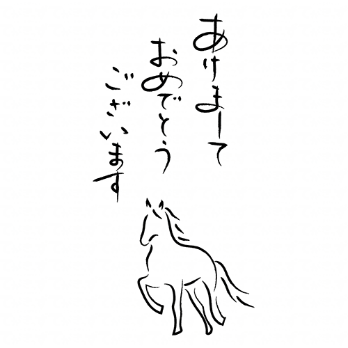 あけましておめでとうの文字と和風の馬1