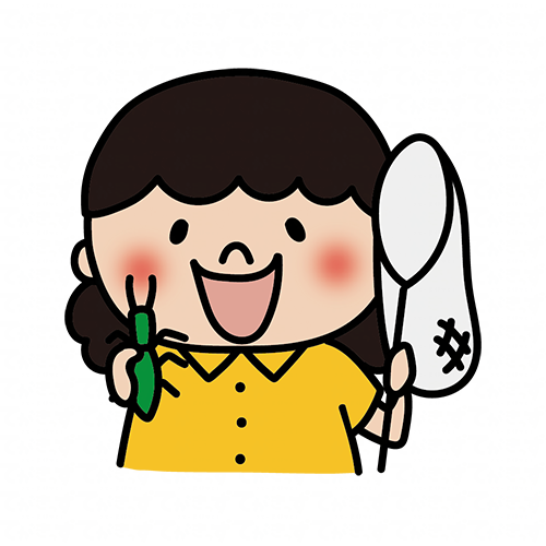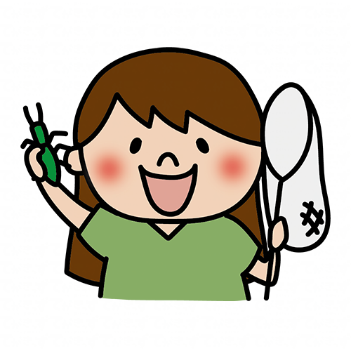 虫取りをする元気で明るい子供(女の子)